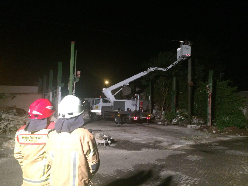Um 22.24 heulten die Sirenen in Kettig. Brand in der Weißenthurmer Straße. Vor Ort zeigte sich ein brennender Strommast in der unmittelbaren Nähe eines gefüllten Dieseltanks.