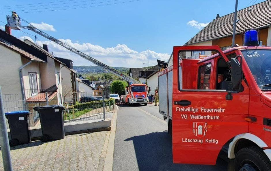 Alarmiert wurden die Löschzüge Kettig, Weißenthurm und Mülheim-Kärlich zu einer brennenden Oberleitung auf Wohngebäude im Kettiger Hellenpfad.