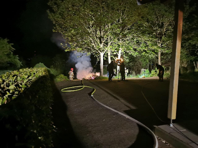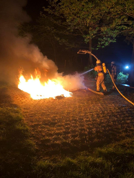 Da sich die Sitzmöglichkeiten nicht von selbst auf die Feuerstelle gestellt haben, wird von Brandstiftung ausgegangen.