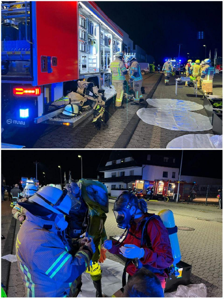 Vor Ort wurde aufgrund reagierender Substanzen mit CSA-Anzug vorgegangen. Darunter auch Kameraden des Löschzug Kettig.