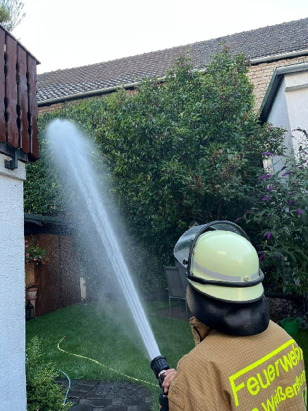 Vor Ort zeigte sich glücklicherweise "nur" eine brennende Hecke auf der Rückseite einer Scheune in der Dobenstraße, welche abgelöscht werden musste. Dies ist dann auch erfolgt.