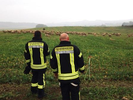 Ein Schaf in Notlage. Andere am Flüchten.Ein Schaf in Notlage. Andere am Flüchten.
