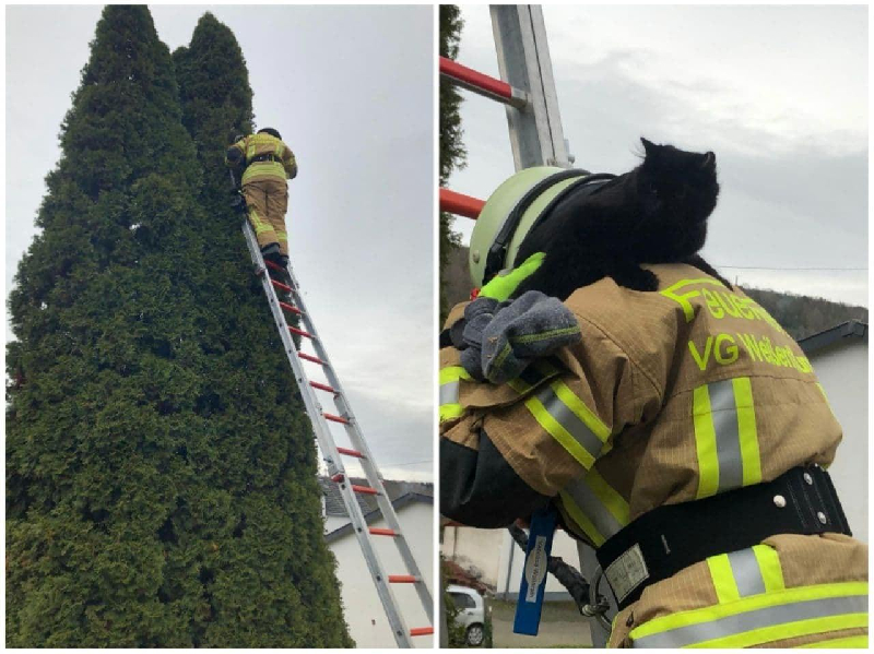 Der Gedanke die Katze mit Hilfe eines Strahlrohrs vom Baum zu holen existierte natürlich nie.