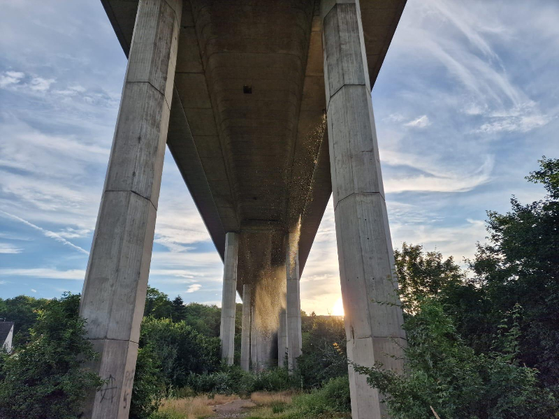 Während auf der Brücke der PKW mit Schaum und Wasser gelöscht wurde, floss das Löschwasser durch die Brückenkanalisation und verteilte sich an mehreren Punkten unter der Brücke. Da das Löschwasser kontaminiert war, wurde ein Fachberater zum Einsatz hinzugezogen. Der Einsatz „Flächenbrand klein“ war somit um ca. 21:20 Uhr beendet.