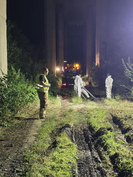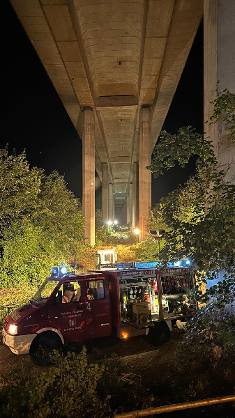Um 23:00 Uhr wurden wir zur Amtshilfe des LBM unter der Kettiger Hangbrücke alarmiert. Das Erdreich, das mit dem kontaminierten Wasser in Kontakt gekommen war, musste fachgerecht entsorgt werden. Wir unterstützten, indem wir die Einsatzstelle ausleuchteten und absicherten. Um 4:30 Uhr konnten wir den Einsatz beenden.